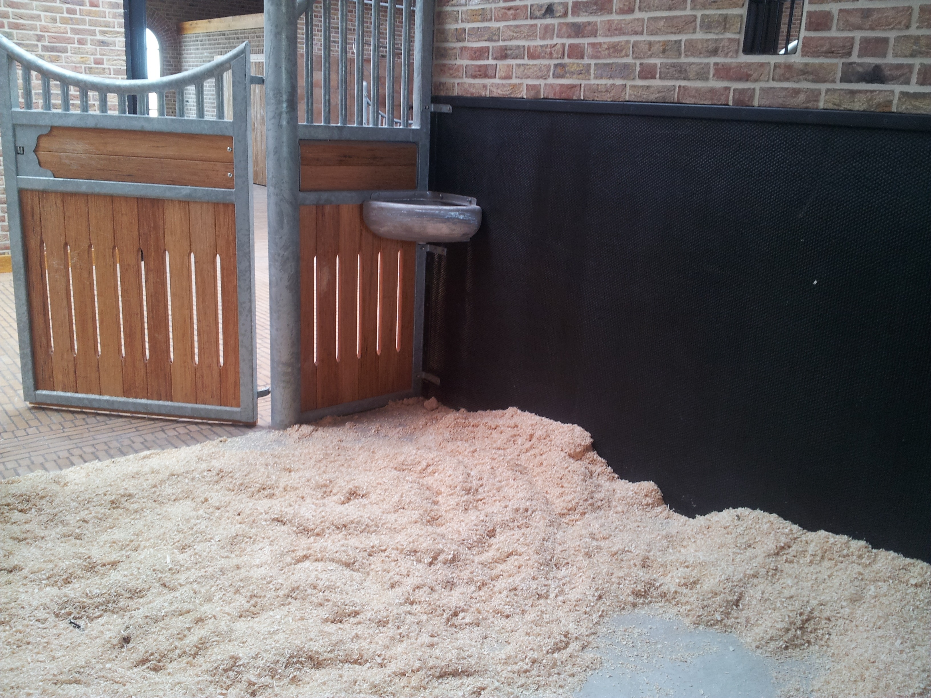 Gebruikte Transportband is +/- 12 tot 15 mm dik en heeft 3 of 4 nylon inlagen. Dit rubber voor paardenstal is bijzonder sterk en vangt met gemak het slaan en schrapen van uw paard op.